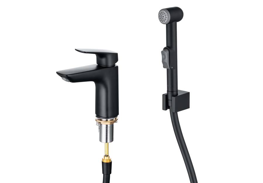 1. Смеситель 2. Гибкая подводка 50см 3. Шланг для лейки 150 см 4. Гигиеническая лейка, размер лейки 173*54 мм, оснащена нажимным механизмом для остановки потока воды 5. Настенный держатель для гигиенической лейки 6. Монтажный комплект |
