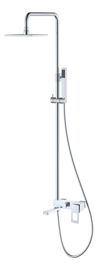 Смеситель; верхний душ; ручной душ; душевая штанга; душевой шланг; гибкая подводка G1/2; крепежный комплект. |