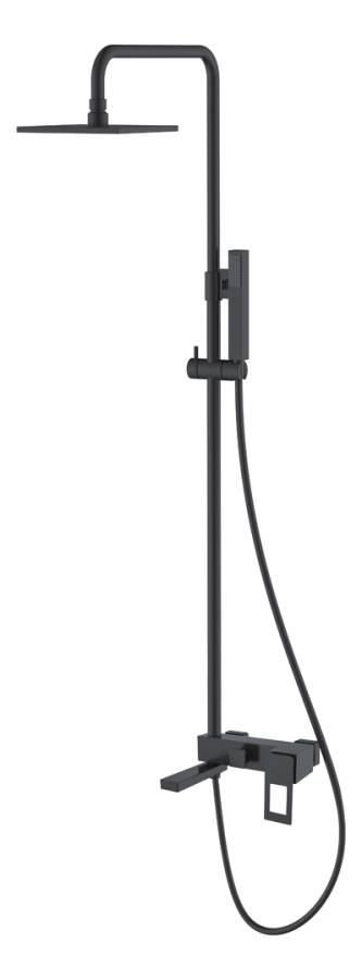 Смеситель; верхний душ; ручной душ; душевая штанга; душевой шланг; гибкая подводка G1/2; крепежный комплект. |