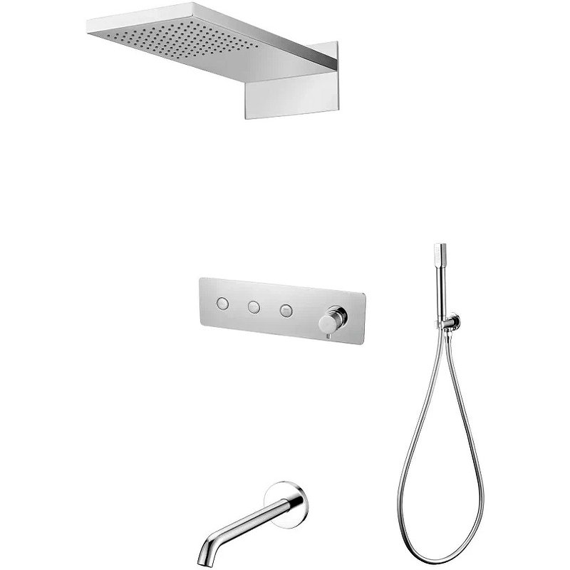 Смеситель (внешняя и внутренняя часть). Излив. Верхний душ. Ручной душ. |