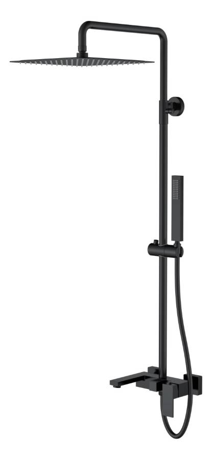 Смеситель с изливом. Душевая штанга. Верхний душ. Ручная лейка. Душевой шланг. Комплект креплений. |