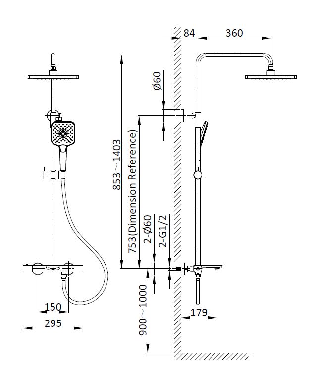 Верхний душ, ручной душ, смеситель со встраиваемой частью |