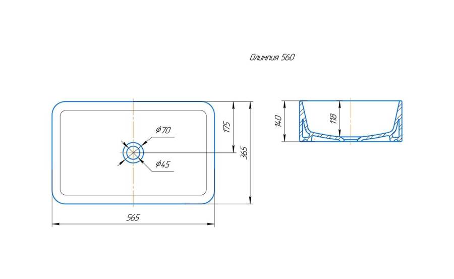 Раковина устанавливается на столешницу, хромированное кольцо для переливного отверстия в комплекте.