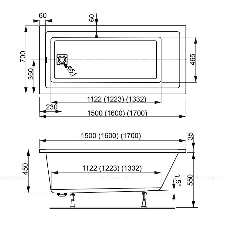 Ванна - 1 шт Инструкция - 1 шт. Декоративная заглушка на слив - 1 шт. |