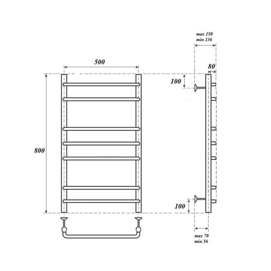 | Полотенцесушитель - 1 шт, кронштейны для крепления к стене - 4 шт, кран Маевского - 1 шт, заглушка декоративная - 1 шт, Электротэн – 1 шт, паспорт/гарантийный талон - 1 шт |