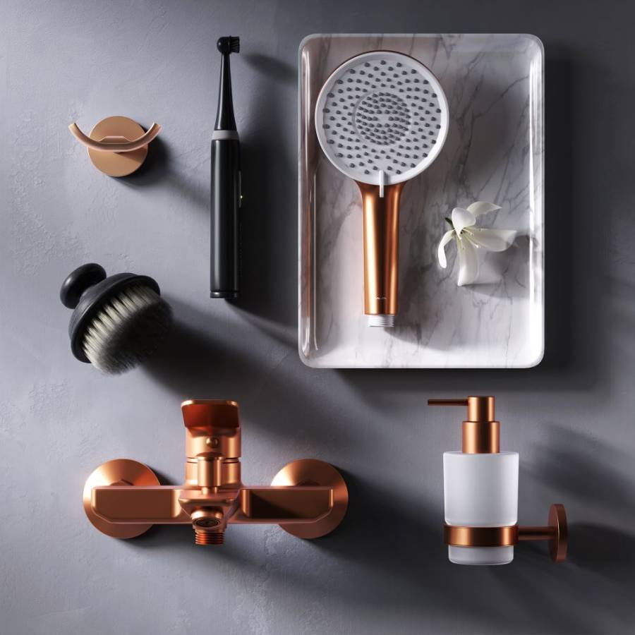 Настоящее произведение ювелирного искусства в вашей ванной комнате: нежный оттенок розового золота получается методом вакуумного напыления смеси 24-каратного золота серебра и меди в процессе которого микрочастицы сплава образуют стойкое соединений с латунной основой. _x000D_