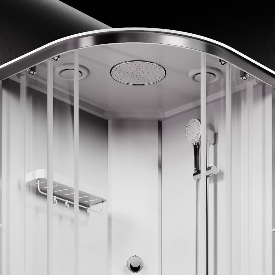Одинарные ролики обеспечивают легкое и бесшумное открывание. Кабина оснащена 5-режимным ручным душем стильным смесителем и компактной полкой на которой разместится все необходимое. Герметичная конструкция защищает помещение от брызг воды._x000D_