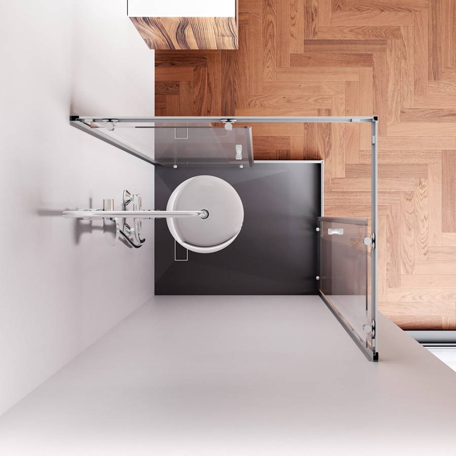 Ограждение имеет сверхпрочные закаленные стёкла. Толщина фиксированных стекол составляет 4 мм двери имеют увеличенную толщину 5 мм. Невероятно плавное и легкое открывание двери благодаря двойным усиленным роликам из ABS-пластика. Нижние ролики обладают функцией быстрого снятия для самой лёгкой уборки. Магнитные уплотнители дверей делают ограждение полностью герметичным и предотвращают попадание воды за пределы душевой зоны._x000D_