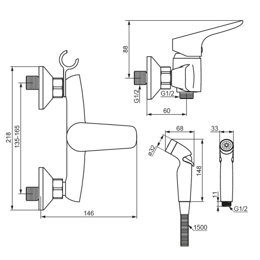 Смеситель с гигиеническим душем имеет компактный размер и монтируется непосредственно в стену что помогает установить его даже в небольших санузлах._x000D_