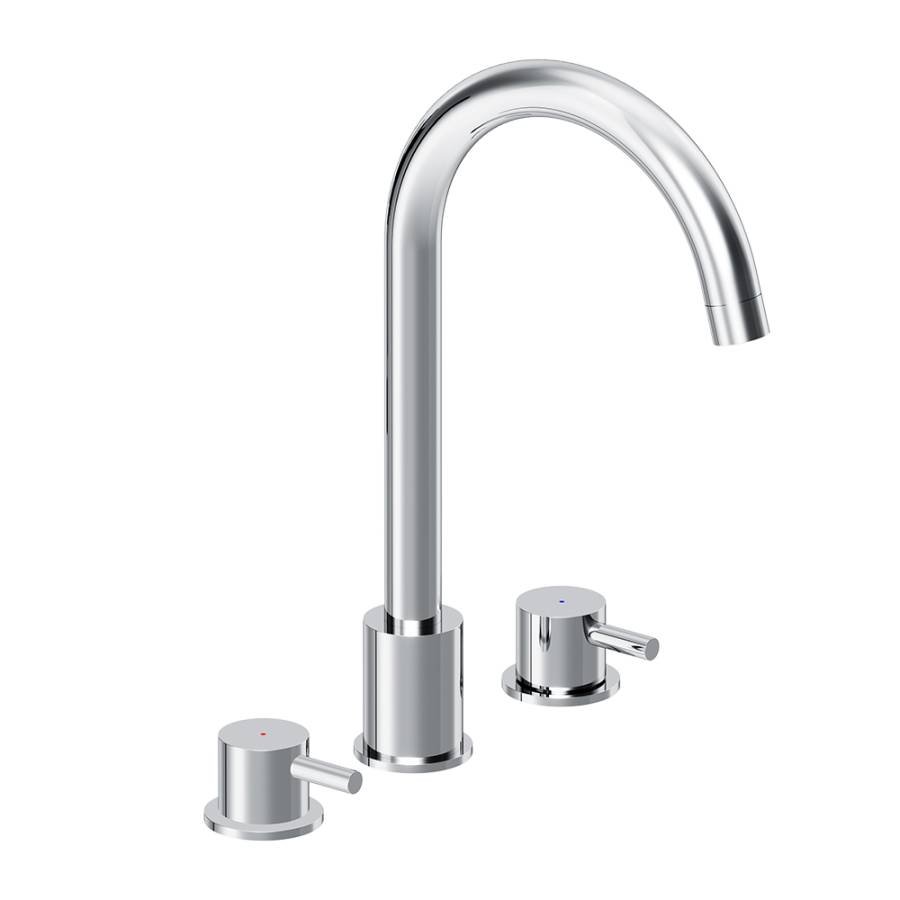 Смеситель для раковины состоит из трех секций: температура воды регулируется отдельными ручками независимо друг от друга как на ретро смесителях. Ручки в виде стика станут ярким акцентом и привнесут особую эстетику в интерьер ванной комнаты. _x000D_