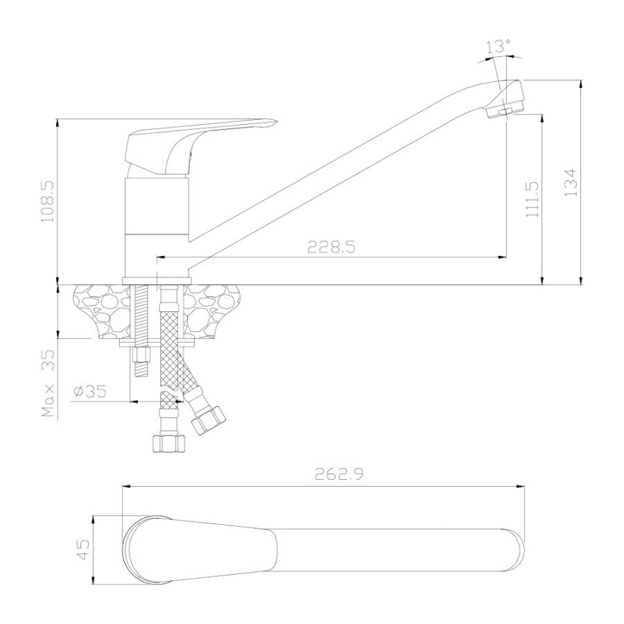 Высота излива см./мм.