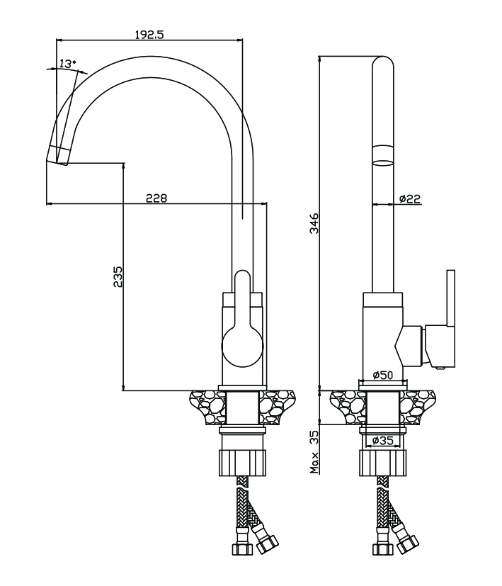 Высота излива см./мм.