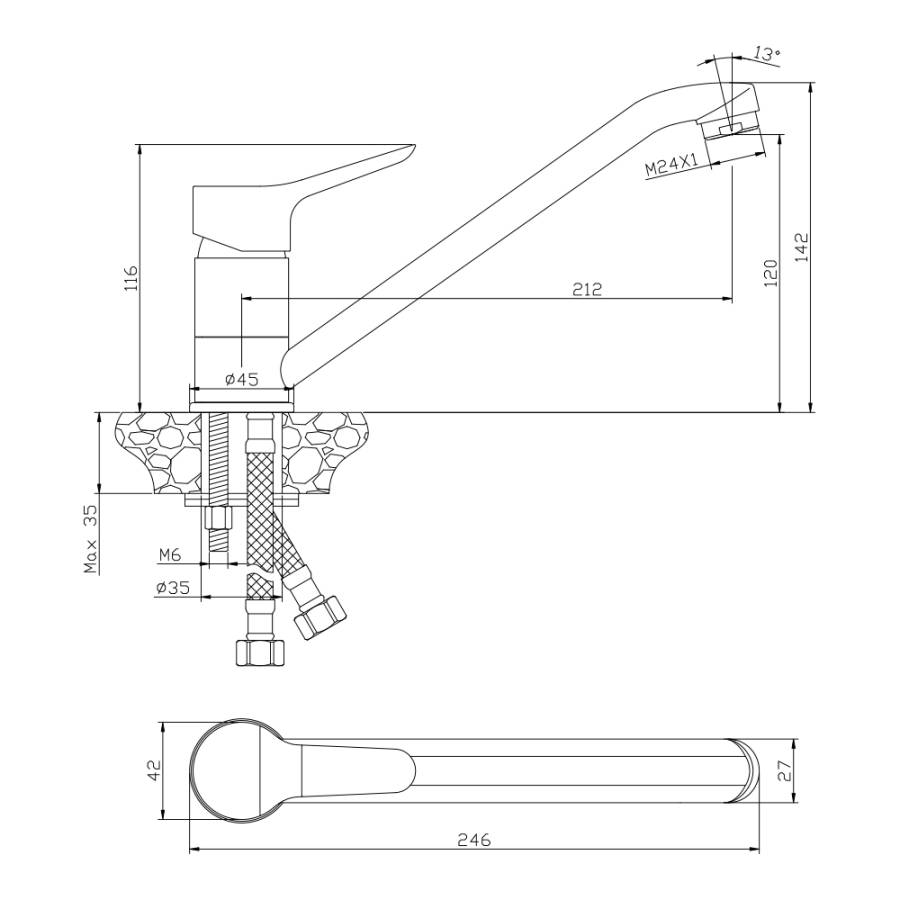 Высота излива см./мм.