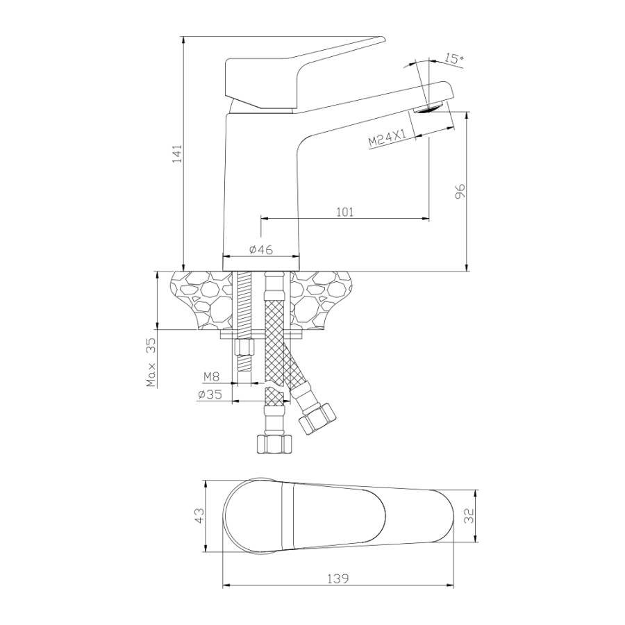 Высота излива см./мм.