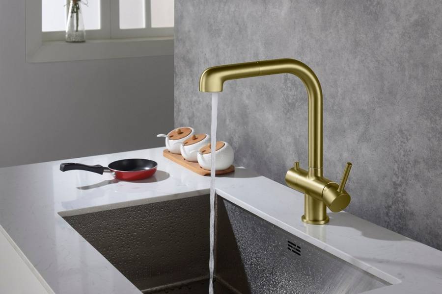 С подключением фильтра и выдвижной лейкой |