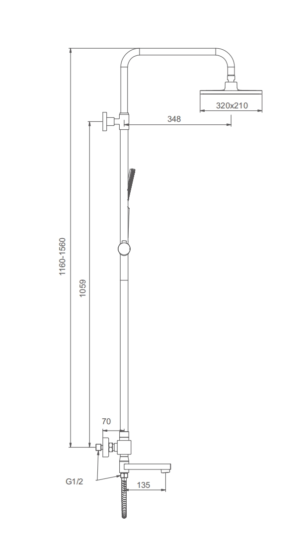 • Регулируемая душевая штанга: 1130-1420мм