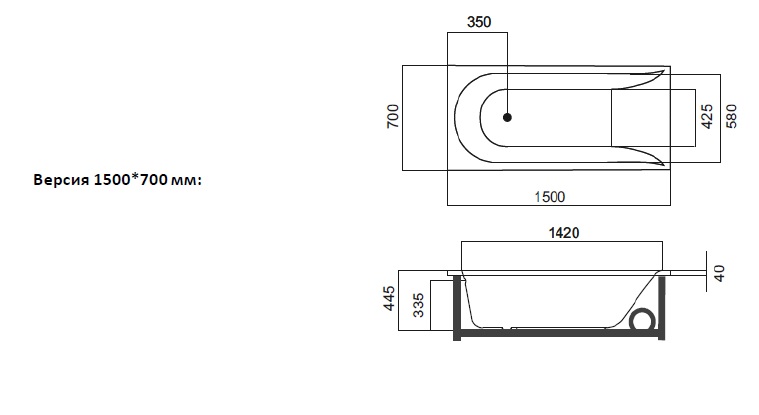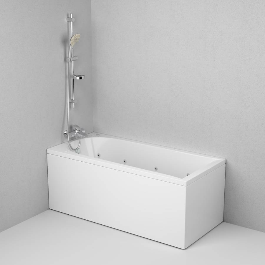 Ванна акриловая гидромассажная на каркасе 1500*700*580 мм: цвет Белый толщина листа - 6 мм объем - 160 л каркас Серый стальной фурнитура - Хром. Гидромассажная система: механическая система управления 6 боковых гидромассажных форсунок. Электропитание 220-230.
