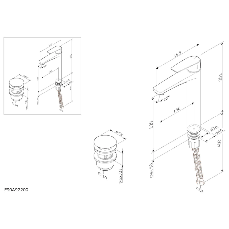 Гибкая подводка, Донный клапан |