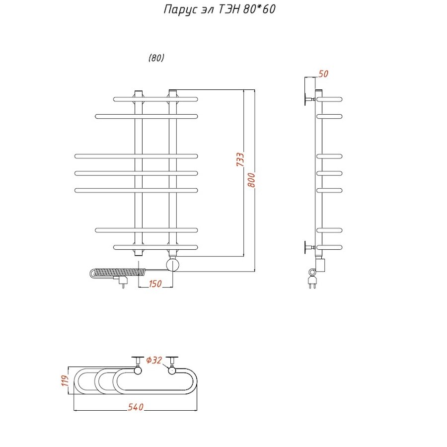 ТЭН 300 Вт, Бытовой антифриз, Заглушка с воздухоотводчиком |