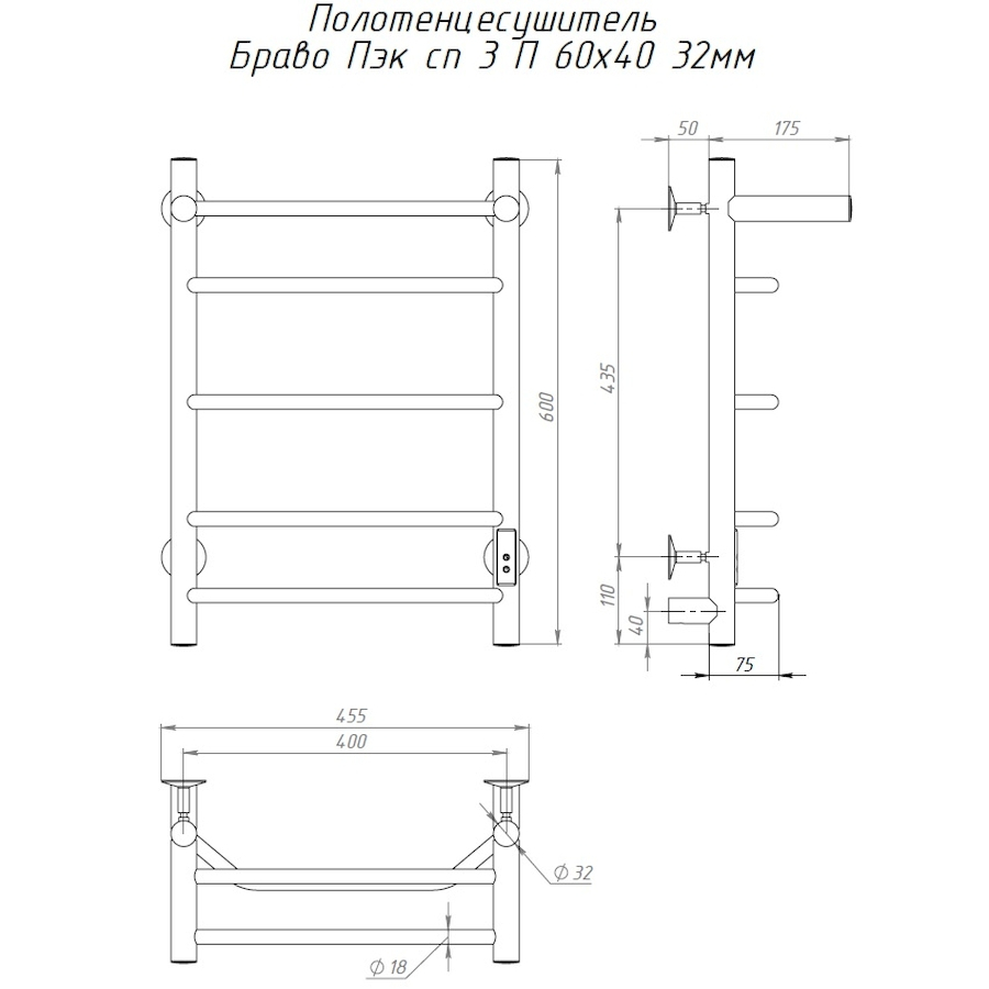 Электропровод с вилкой; Направление подключения: Левое, Правое |