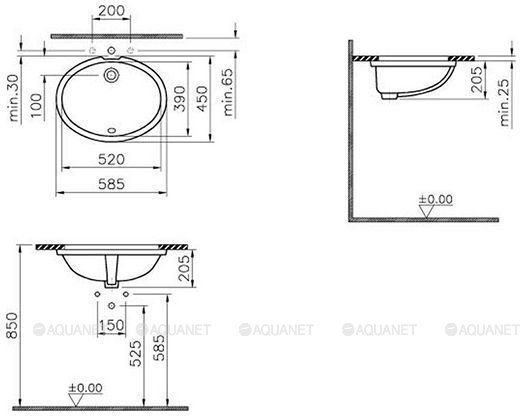 Набор креплений к столешнице; Шаблон для вырезки отверстия в столешнице (масштаб 1:1) |