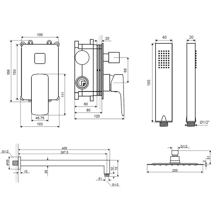 - верхний душ 20х20 см;