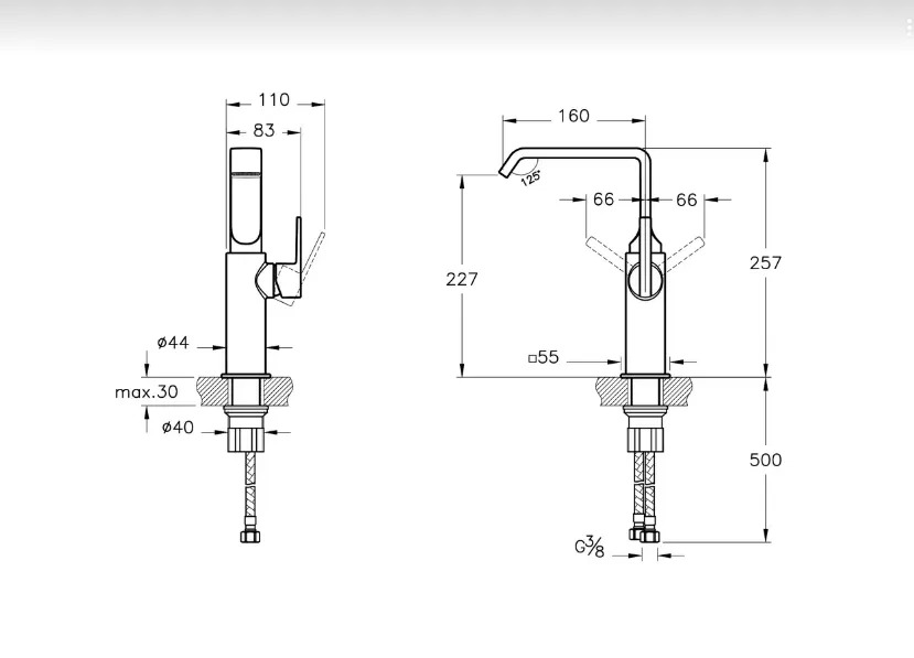 Высота излива см./мм.