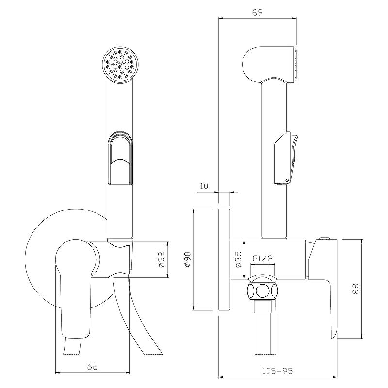 Душевой шланг, Гигиеническая лейка, Смеситель |