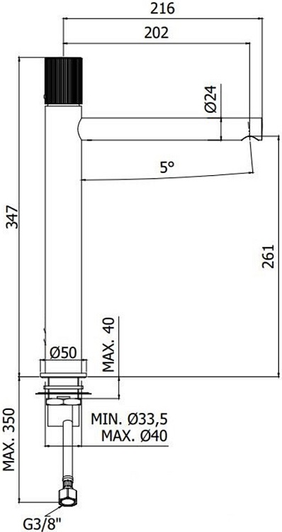 Длина излива см./мм.