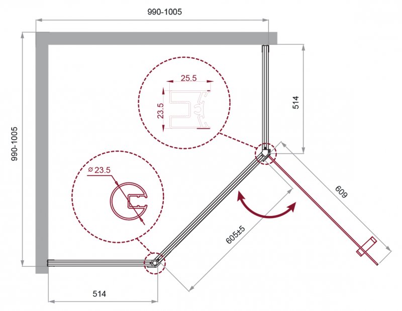 Напольный, на поддон, пристенный в угол |