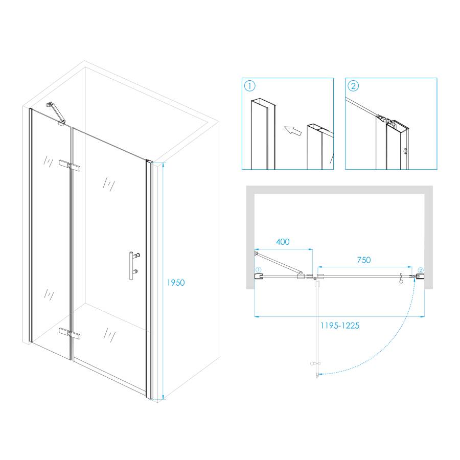 Дверь имеет высоту общую 1950 мм и имеет 2 класс герметичности, что предотвращает вытекание воды за пределы душевой кабины и обеспечивает комфортное использование. Кроме того, она оснащена функцией Easy Clean, которая облегчает уход за дверью и позволяет быстро убирать водные отметины и пятна.