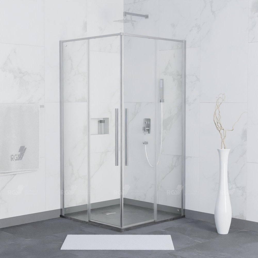Душевой уголок имеет квадратную форму, что придает ему современный и элегантный вид. Цвет профиля выполнен в хромированном исполнении, что добавляет блеска и выразительности его дизайну, а также позволяет легко сочетаться с другими элементами интерьера.